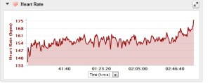 Getting off the bike, my legs felt pretty trashed, still hurting from over-biking on the first 56 miles of the bike. Con sarnit!! I usually go out pretty hard during Ironman runs, but given how my legs felt, I was fairly confident that going out hard would end up in disaster. So again, just like on the 2nd loop of the bike, I held myself back. I wasn’t going easy, but I certainly wasn’t going very hard, either. The plan was to just coast along until my legs “came back to me.” Along the way, I managed to work my way into 7th place, which was nice. Then, at about the 8 mile mark, my legs returned, and at that point, I decided I had to make a move at the halfway point. So, I continued my relaxed cruising until mile 13, but then when I hit mile 13, it was time to attack. It hurt like a son of a gun, but it paid off, as I took over 5th place at the 17 mile mark. The last 9 miles were just survival, and I had to do everything I could to hold off Brad Seng, Tim Tapply, and Logan Franks. They were coming at me hard, and I had to go pretty deep in the well to hold them off. Below is a graph of my HR profile during the run. Based on the graph, it looks like I nailed the pacing, but that lift at the end? Oh my! That hurt like nothing I’ve experienced in recent memory… My hamstrings then thanked me by simultaneously cramping right as I crossed the finish line. Good timing by them I guess, right? Ha!