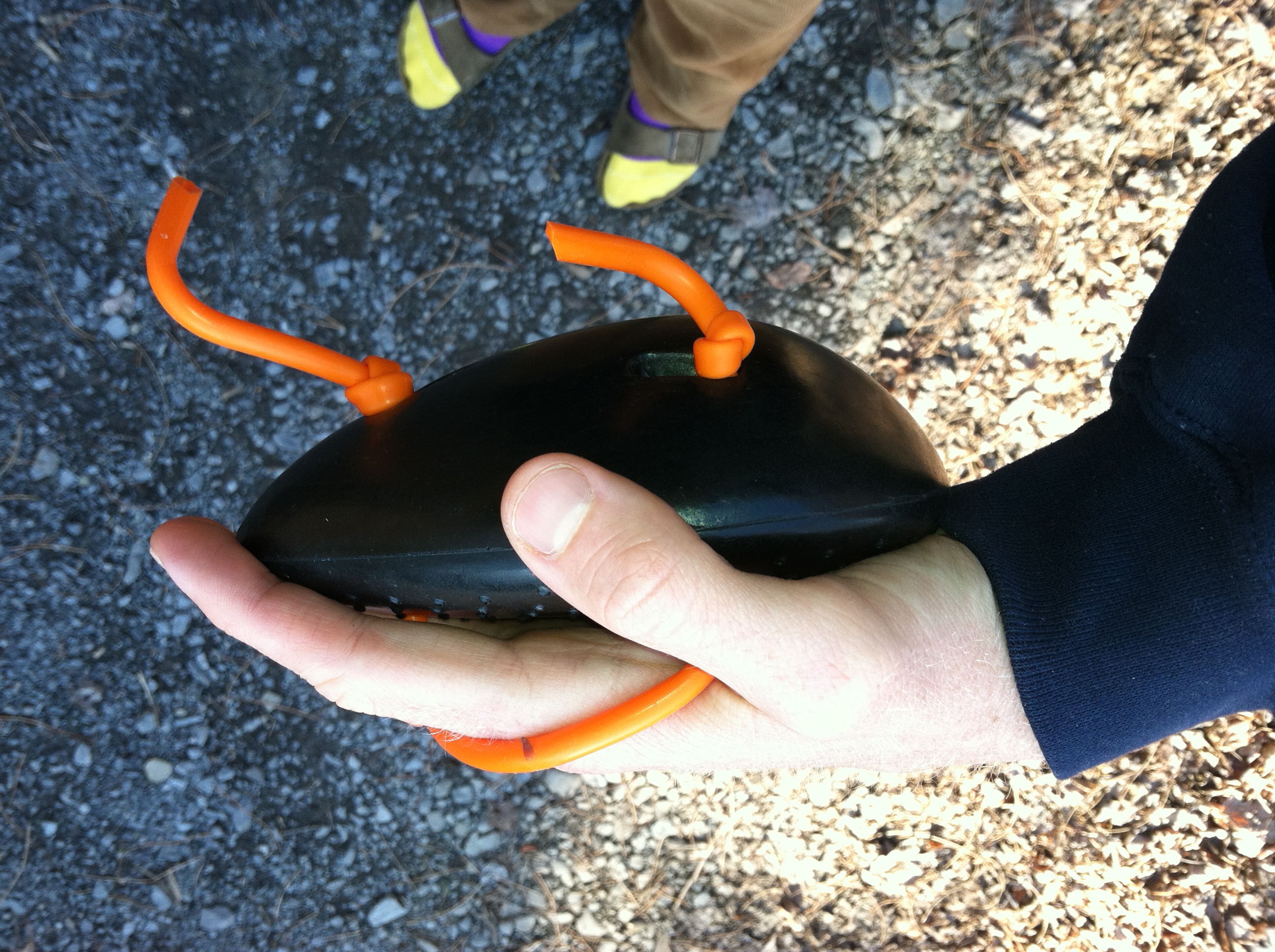 Balance is obviously the most important aspect of swimming to learn, as it forms the dividing line between “drowning” and “not-drowning.” But if you want to go fast, you also need to develop an effective and efficient pull phase. This is where the Finis PT Paddles come in. I’ve long been intrigued by these interesting, potato-shaped, paddles, so I ordered a pair from Aquagear Swim Shop.