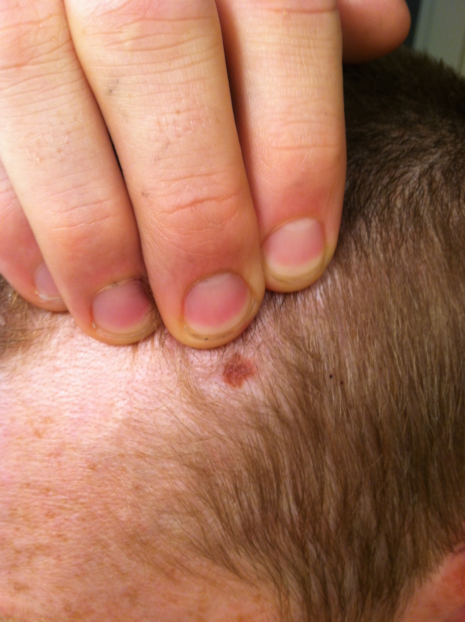 (worth noting… I have no idea how long it was there. I only noticed it because I buzzed my hair for a race in August)